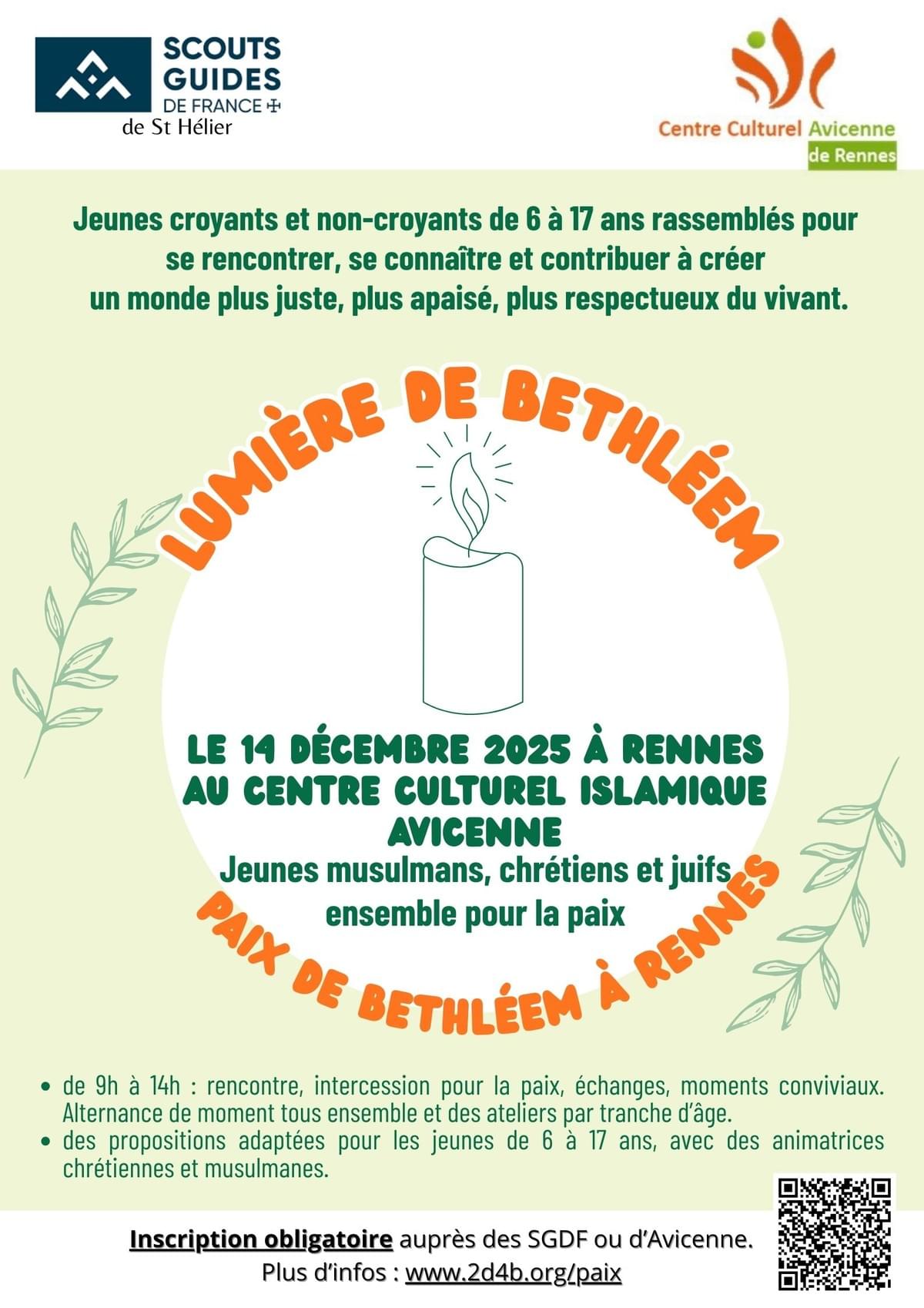 120 jeunes musulmans, juifs et chrétiens au centre culturel Avicenne le 14/12/25 pour la paix de la lumière de Bethléem.